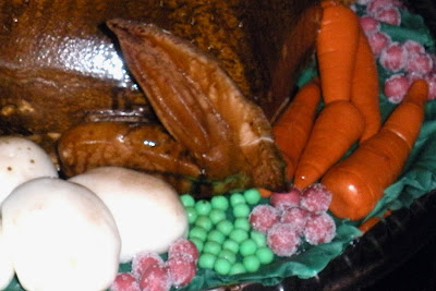 Here is a close up of the carrots, peas, sugared cranberries and yes those are supposed to be potatoes!! Some people thought they were eggs!!