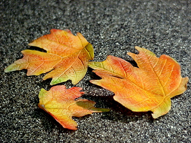 Mame's Autumn leaf tutorial to create leaves and placed them on a oval cake board, lightly dusted randomly with gold luster dust to give the appearance of a porcelain platter.