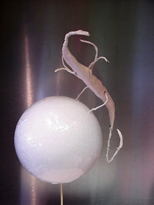 2.Moisten body with gumglue and cover body with white gumpaste.