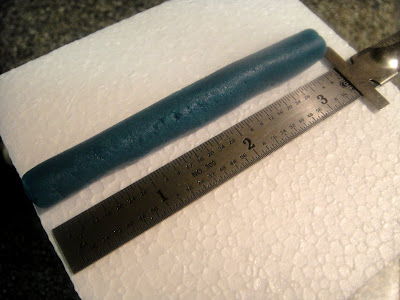 Roll out the blue into a cord about 3- 3-1/2" long