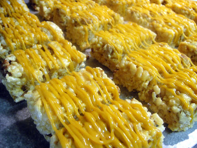 Once you have your "hay bales" made, reserve some of the butterscotch glaze in a piping bag