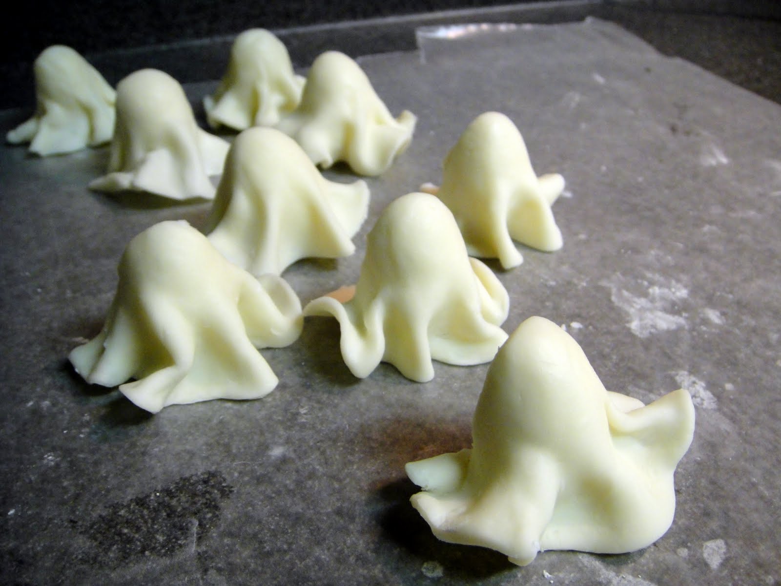 Melt 1/2 cup white confectioner's melts. Pour into a plastic piping bag and