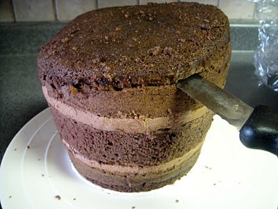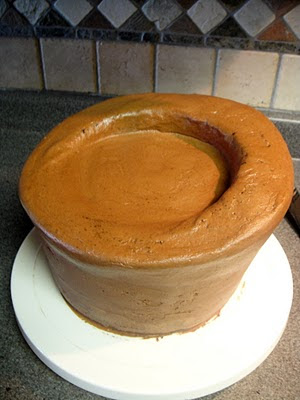 I contoured the tier with a serrated knife, cutting away the excess.