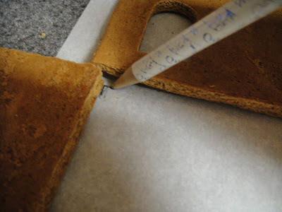 of your gingerbread. If your baked pieces are ¼” thick, then move two sides